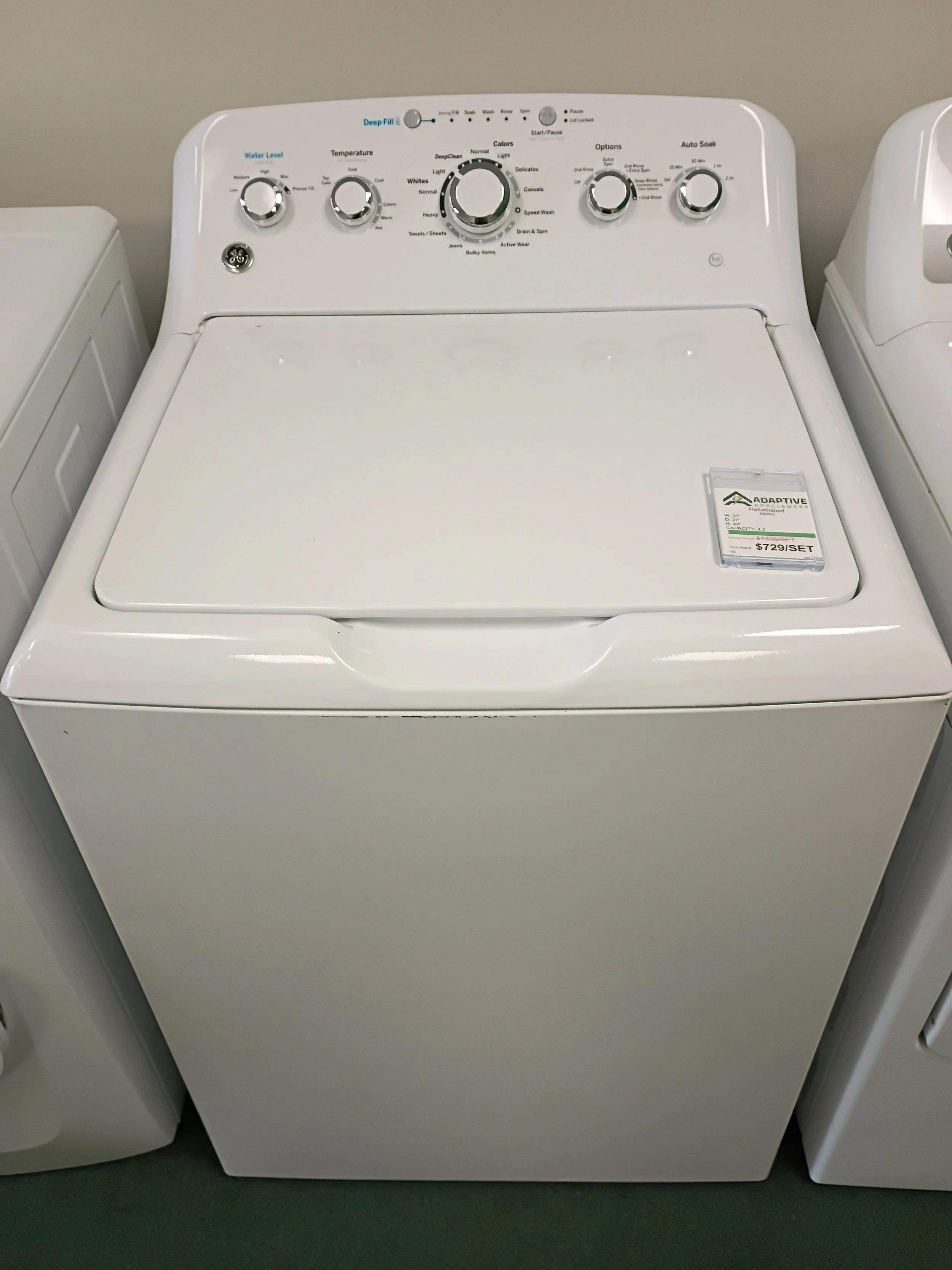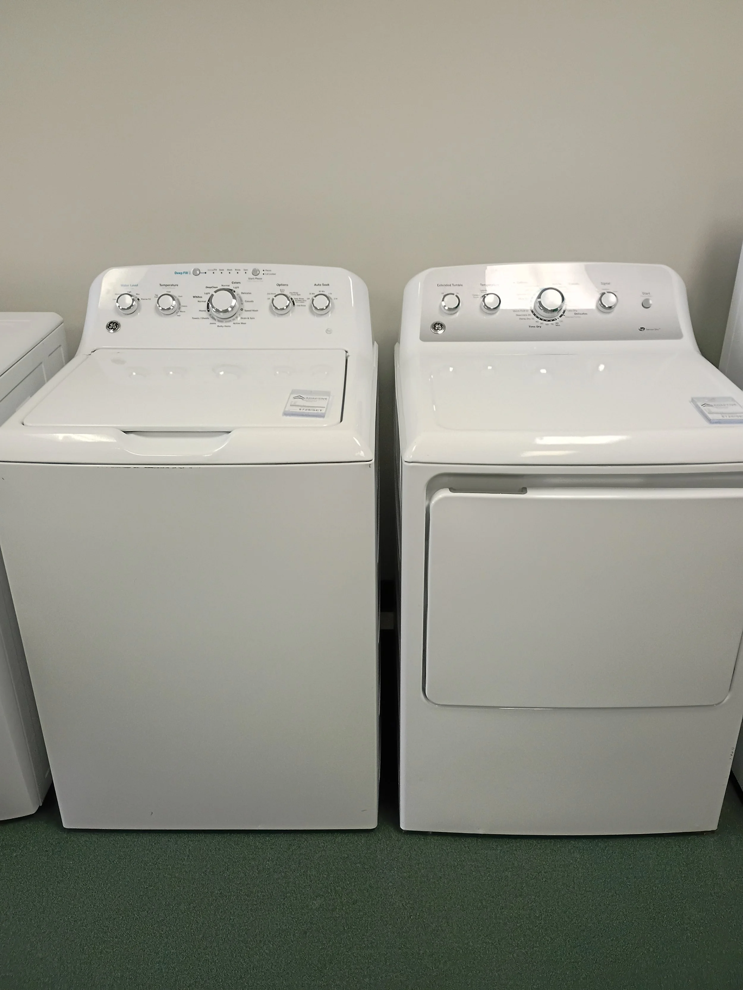 Categories: All Featured Products Kitchen Dishwashers Refrigerators (French-Door) Refrigerators (Side-by-Side) Refrigerators (Top/Bottom Freezer) Stoves (Dual Fuel) Stoves (Gas) Stoves (LP) Stoves (Electric) Dual Fuel Stove Wall Oven Mini Fridge Microwaves Freezers Upright Refrigerator Only Wine Cooler Convertible Fridge Laundry Washer/Dryer Sets (Stackable) Washer/Dryer Sets (Top Load) Washers Laundry Centers (one unit w/d) Dryers (Propane) Dryers (Gas) Dryers (Electric) Open Box Scratch and Dent All / Laundry / Quick View GE Top Load Washer and Natural Gas Dryer Sale Price: $729.00 Original Price: $1,398.00 Sold out