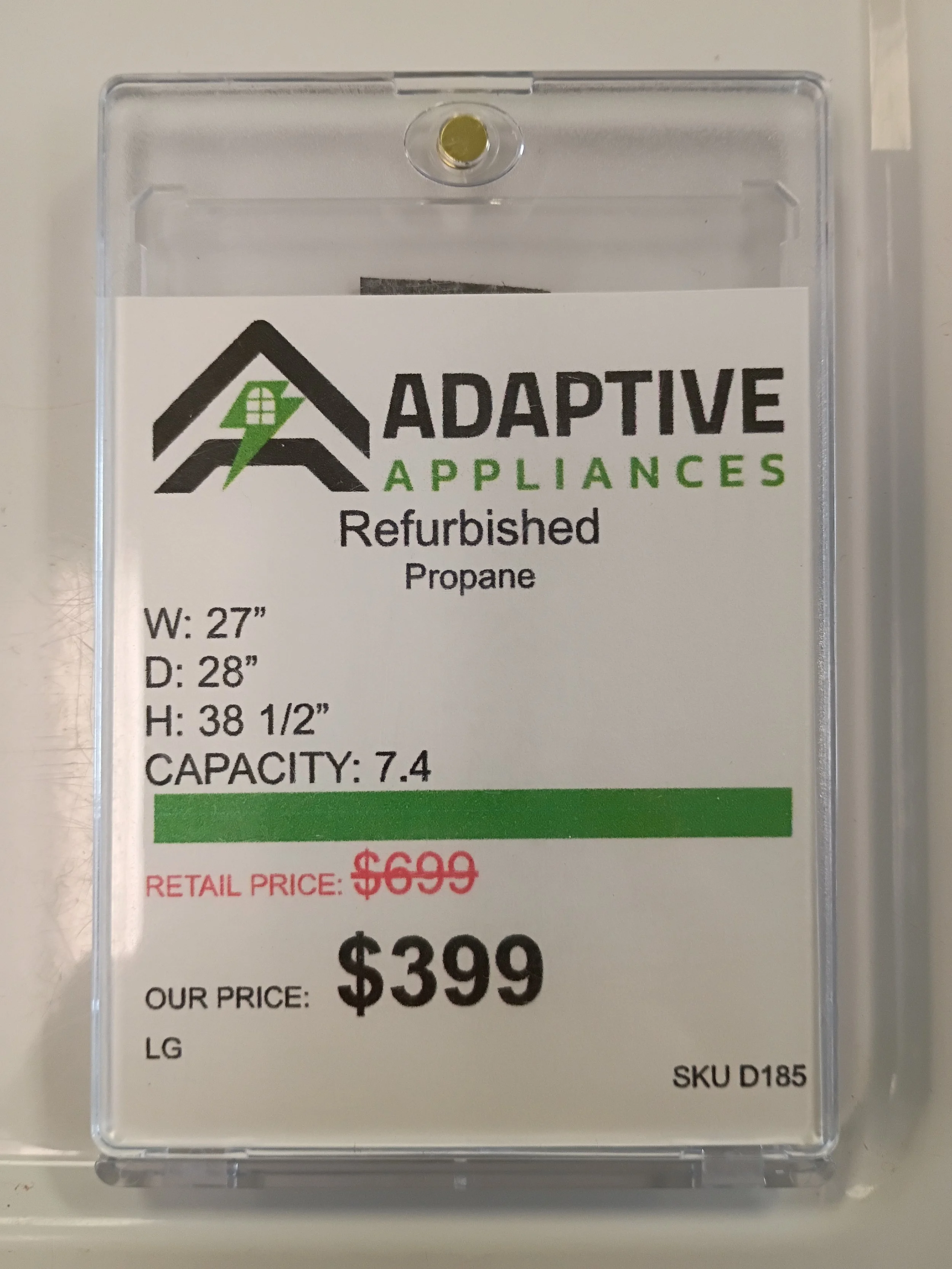 Inventory › LG Propane Dryer Image 1 of 5 Image 2 of 5 Image 3 of 5 Image 4 of 5 Image 5 of 5 LG Propane Dryer Sale Price: $399.00 Original Price: $699.00 7.4 cubic foot drum - enough room for a king sized comforterAlready converted to propaneComes with a 6 month warranty Get notified by email when we have something similar in stock Purchase Added! 7.4 cubic foot drum - enough room for a king sized comforterAlready converted to propaneComes with a 6 month warranty